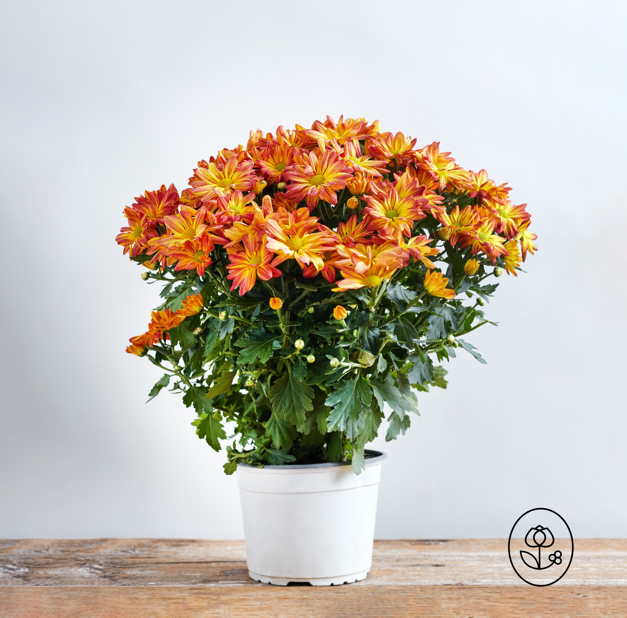 Floral mums prefer consistent, temperatures with indoor temperatures ranging between 65-70°F. Avoid direct sunlight to increase the length of enjoyment. Soil should be well-drained and moist. However, allow soil to dry a bit between waterings. Hardiness zones range from 5-9.